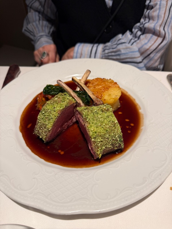 Marge had a rack of lamb but she didn’t care for the sauce: