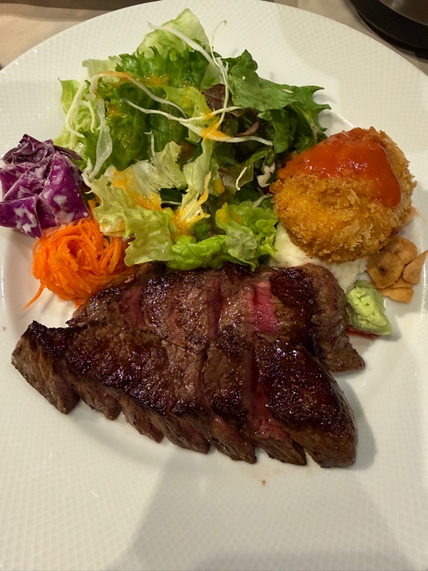 We stopped for lunch at a place that served Kobe beef. My Kobe beef dish was served with a shrimp croquet.