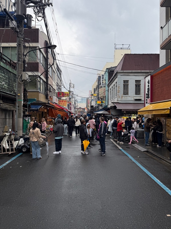 We docked at the Tokyo cruise terminal this morning on a cold & rainy day. Late in the morning, we took a taxi to the Tsukiji outer market. I hadn’t planned on going there because I had been told that it was crowded, but I figured the weather might keep some people away.